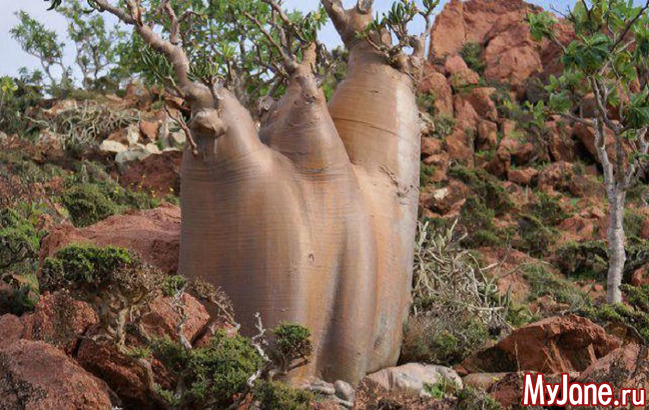 Иногда можно встретить адениумы и вовсе растущие на голых скалах, запустившие длинные корни в их трещины.