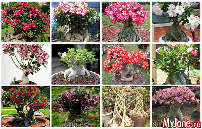 Благодаря своему причудливому внешнему виду, очень напоминающему бонсай, адениумы часто выращивают в этом качестве. Особых усилий от цветовода, в отличие от бонсая истинного, это не требует, здесь вмешательство человека сводится до минимума: