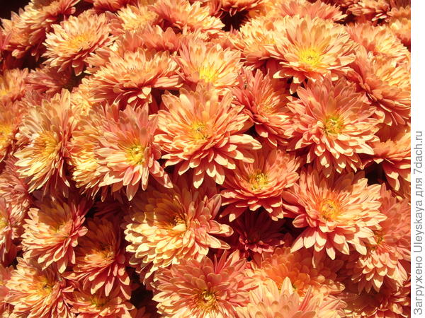 Сорт с самым большим соцветием; в 2015 г был не такой крупный, как в 2013-2014 гг, он уступал ‘Апельсиновому Шару’, семье хризантем Creamiest.