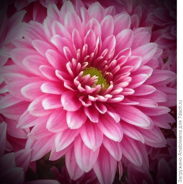 Вот именно такую фотографию я и начала вышивать. Решила, что она хорошо должна смотреться бисером. Так что, как сделаю, отпишусь и всё покажу. Муж мой опять смеётся, говорит — «синяя синяя, зелёная, зелёная, аж вся розовая хризантема».